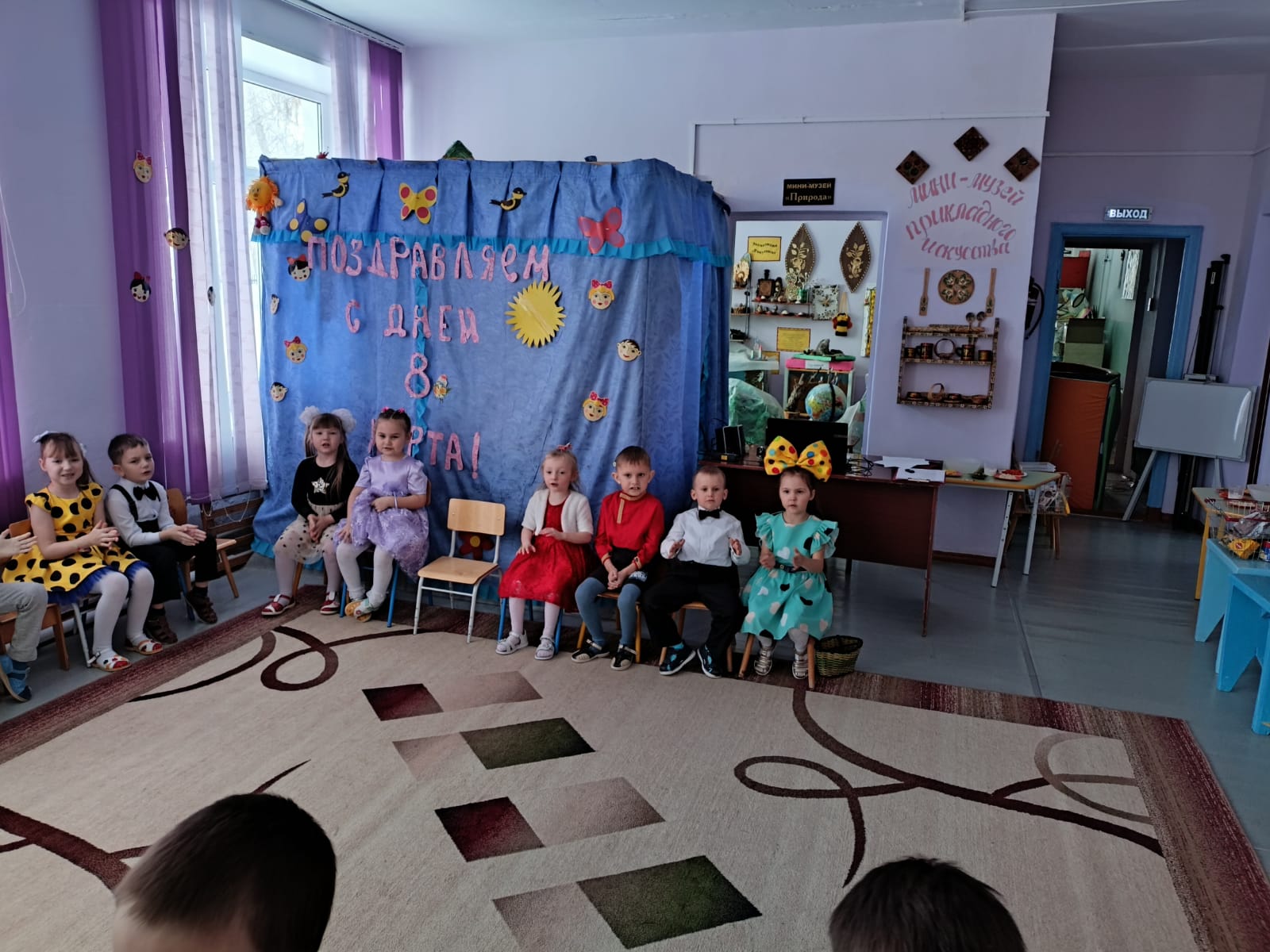 Утренник к 8 марта в старше- подготовительной группе " Бантики для мам". Дети читали стихи для мам. пели песни, поздавляли бабушек, играли в игры, танцевали, готовили салат для любимых мам, "ходили" в магазин за праздничными покупками