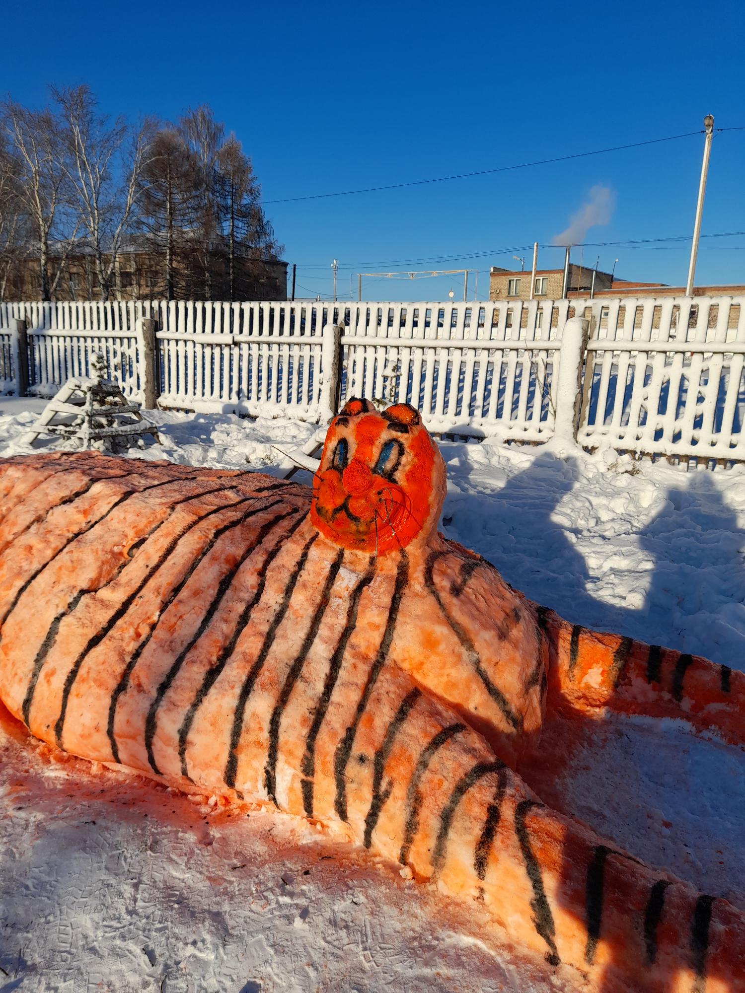 Сотрудники ДОУ помогали Октябрьскому С/ совету в украшении площади перед СДК к Новому году. Своими руками вылепили символ года- тигр.