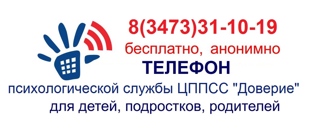 Телефон психологической службы ЦПСС " Доверие" для детей, подростков , родителей 8(3473)31-10-19. Бесплатно, анонимно