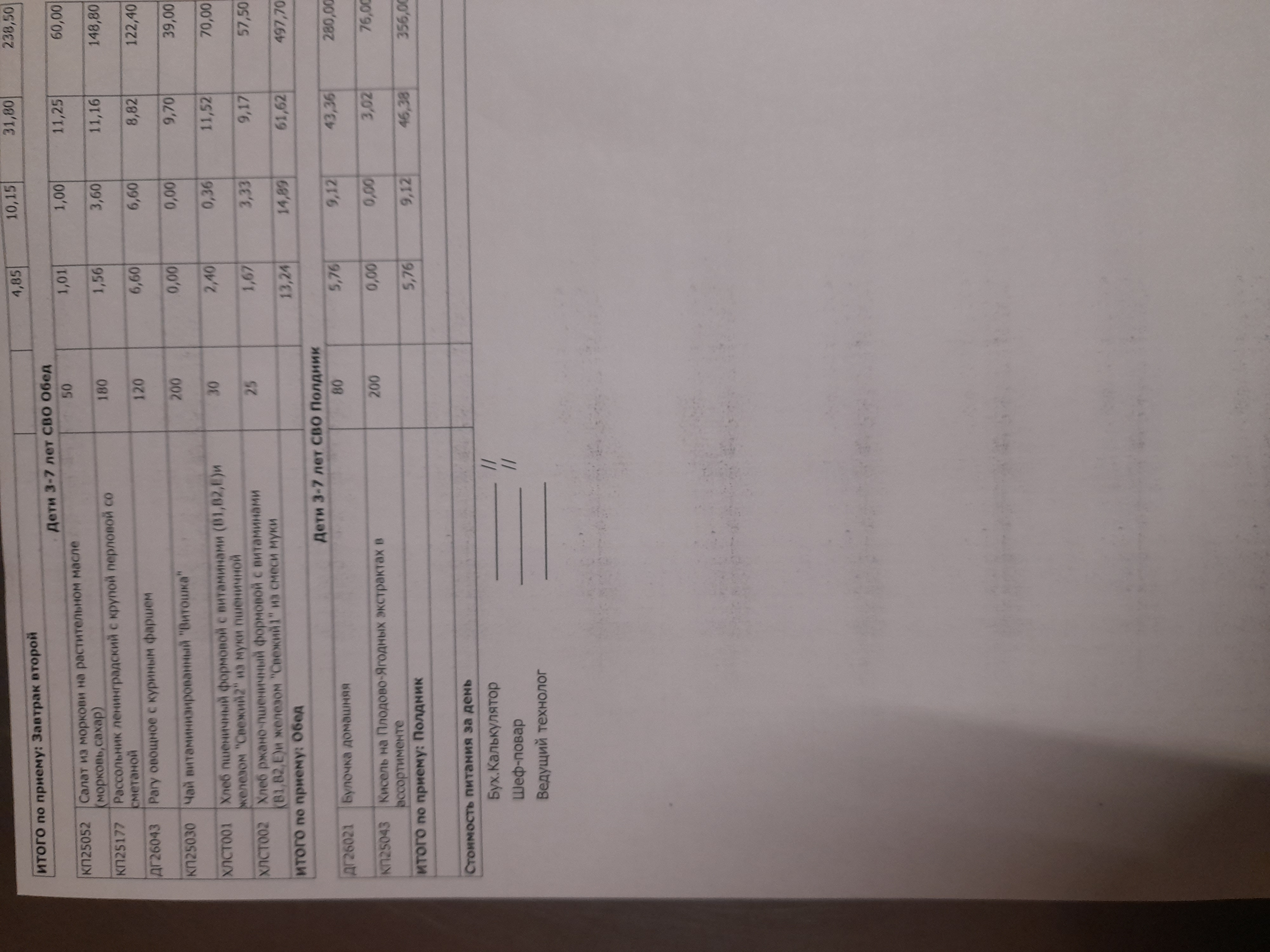 Стоимость питания