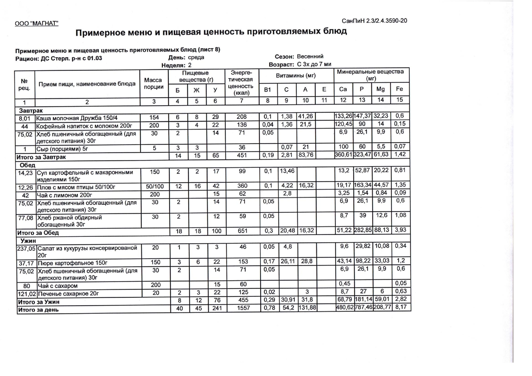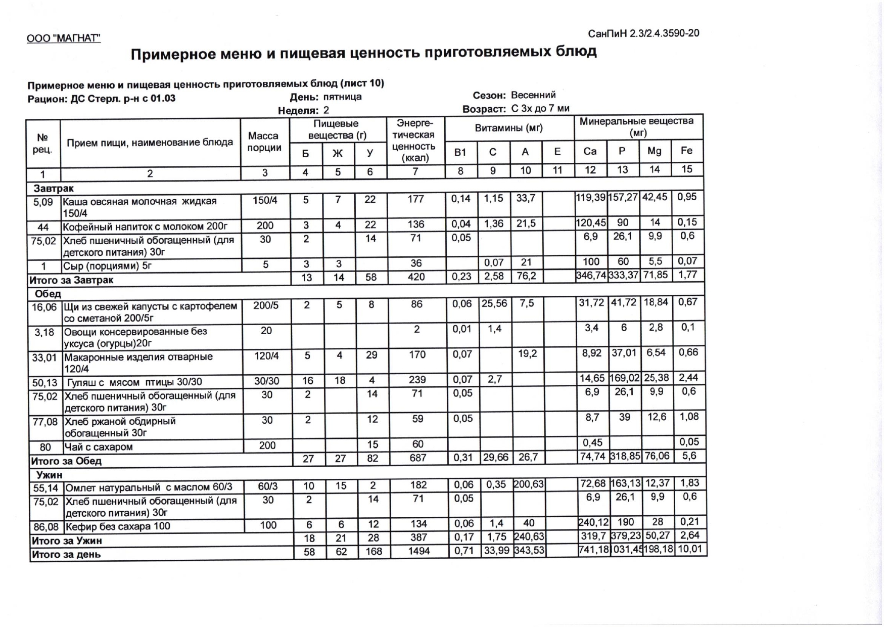 (Меню весна- лето)