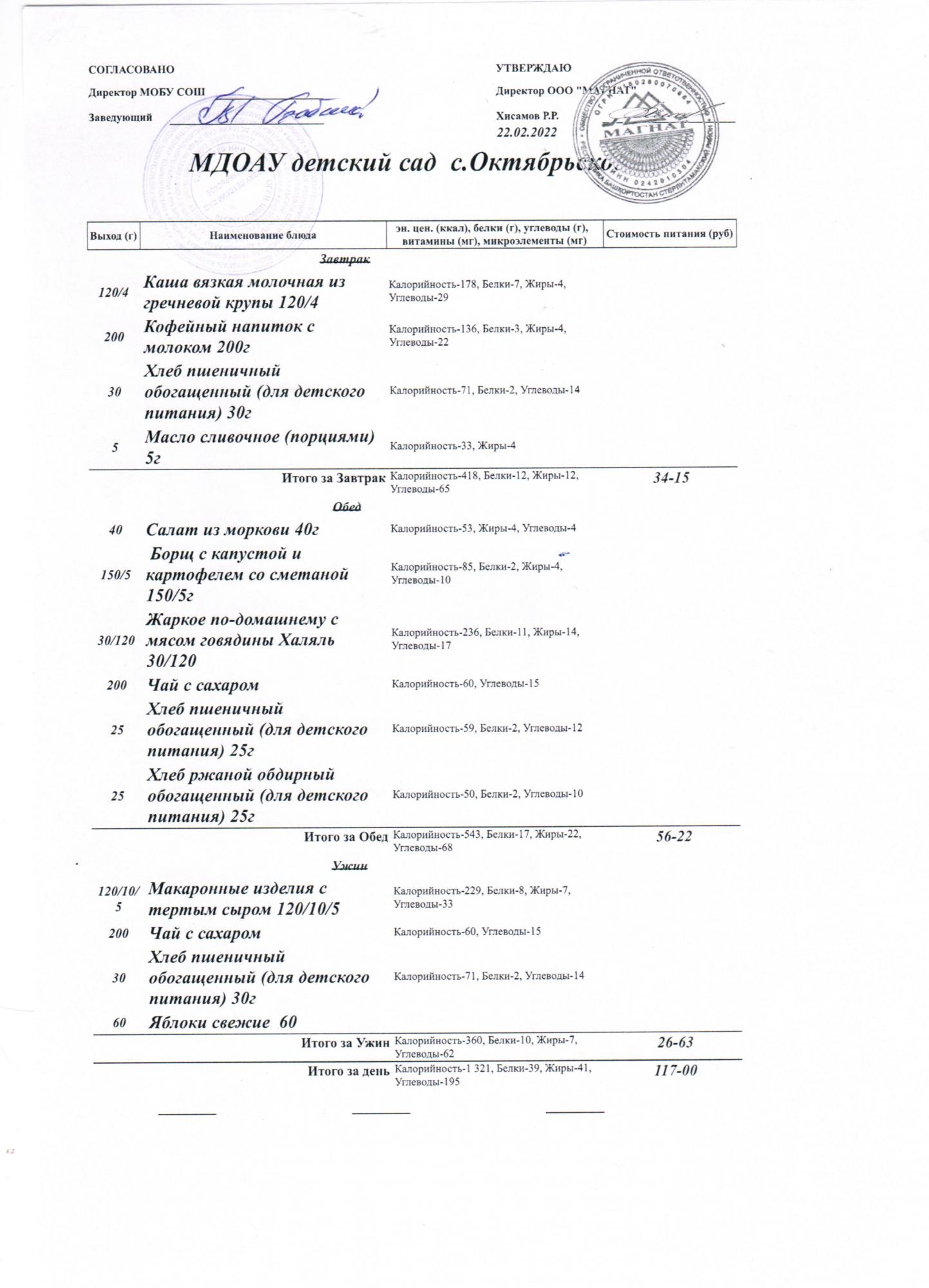 Стоимость питания