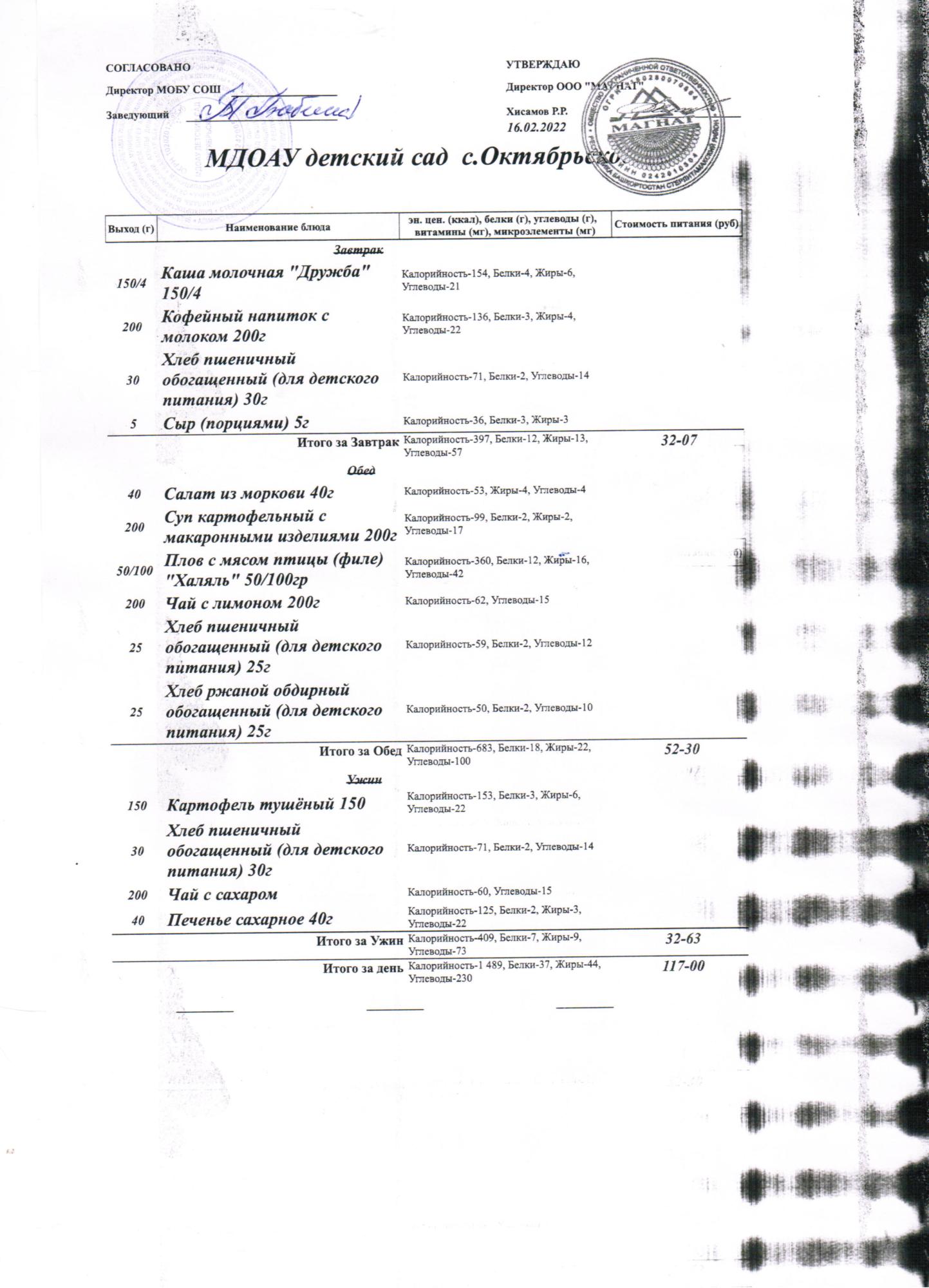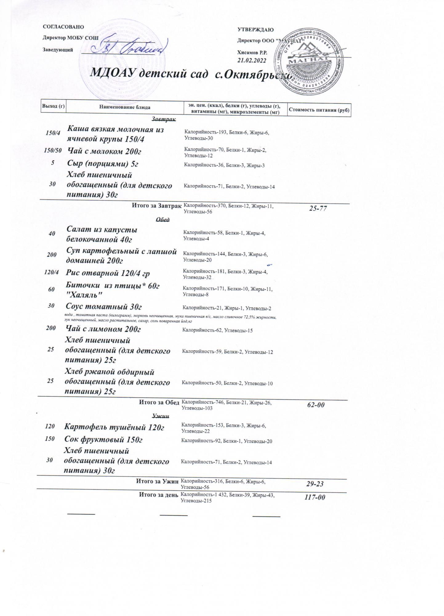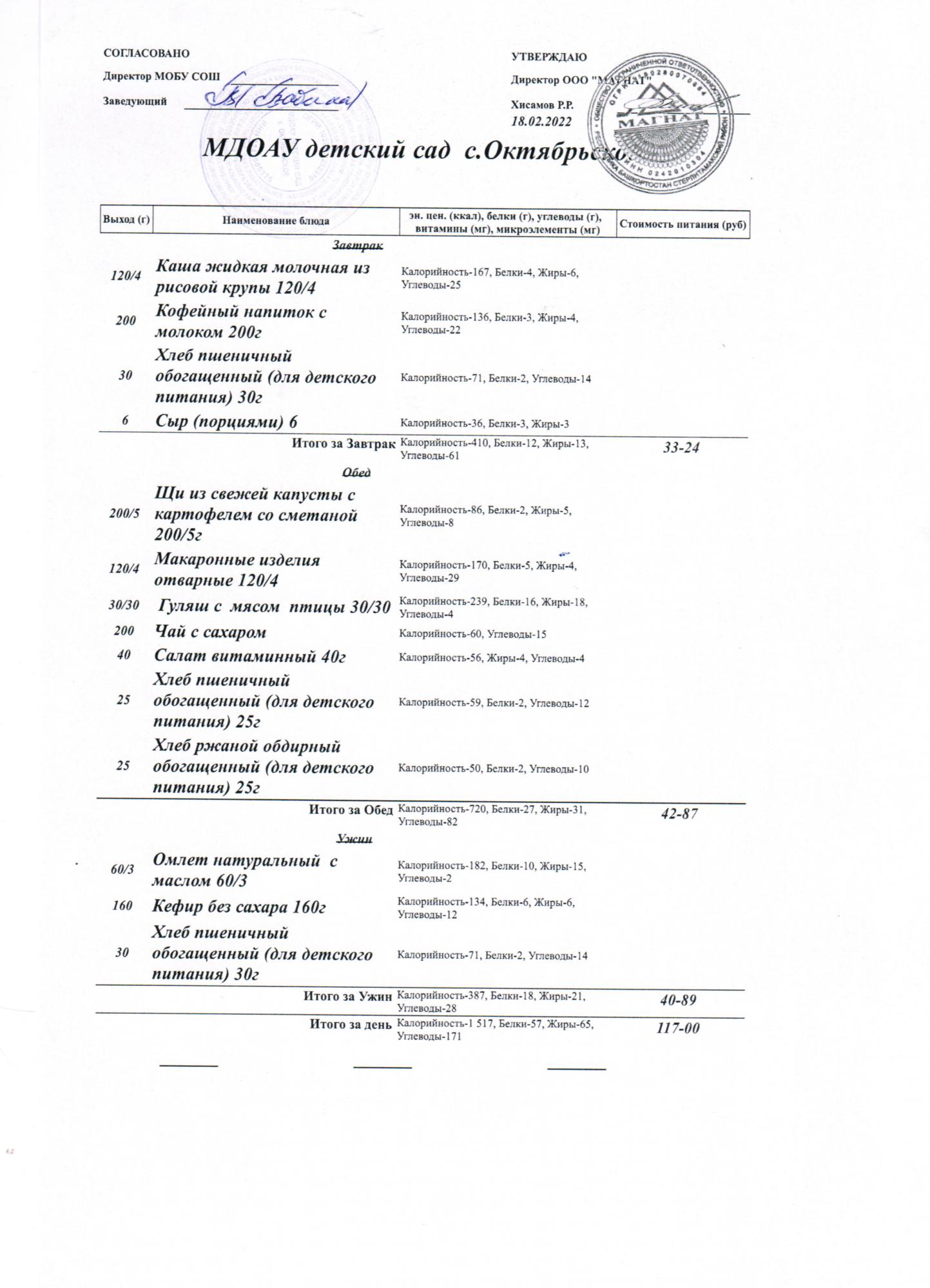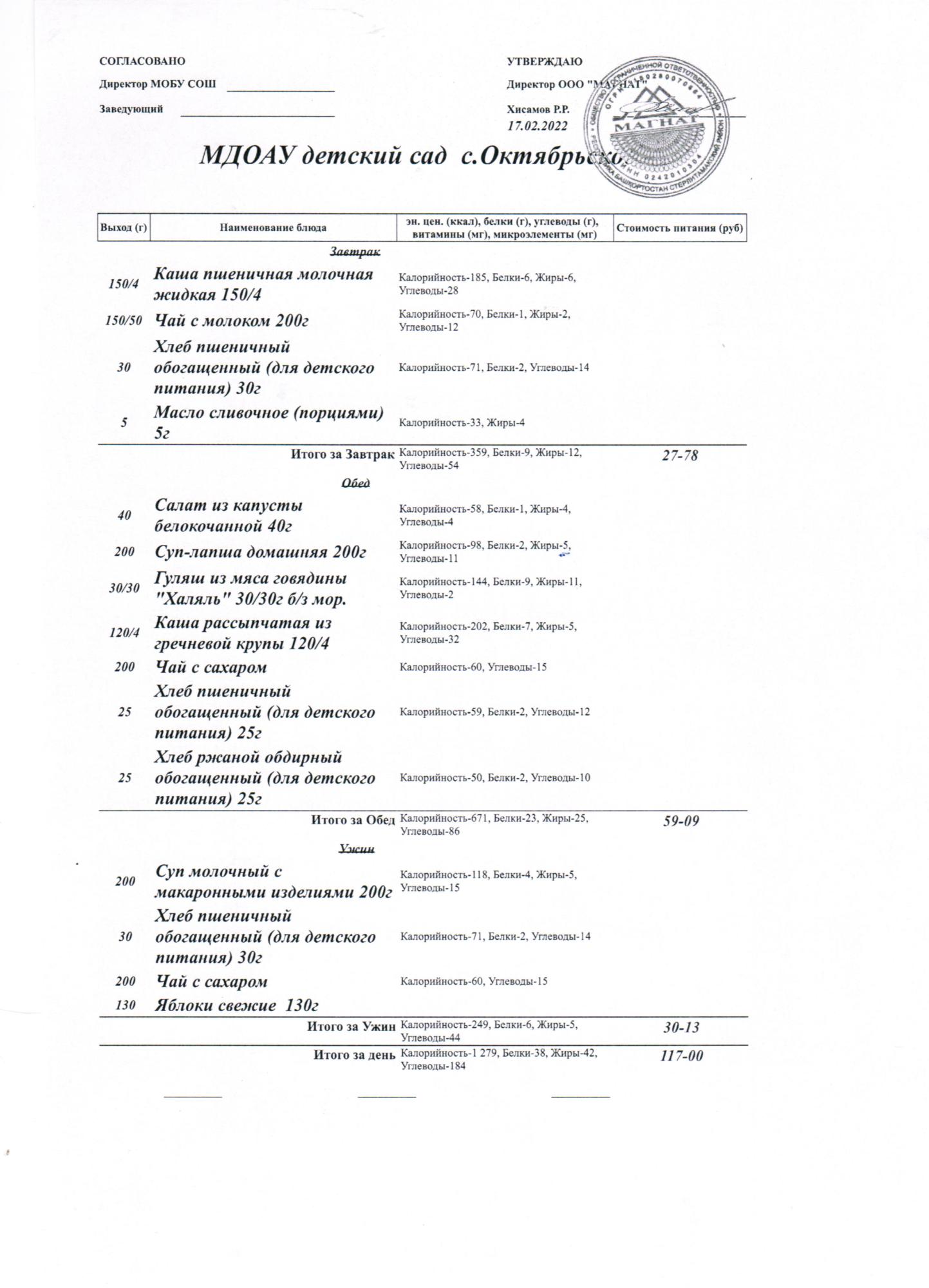 Стоимость питания