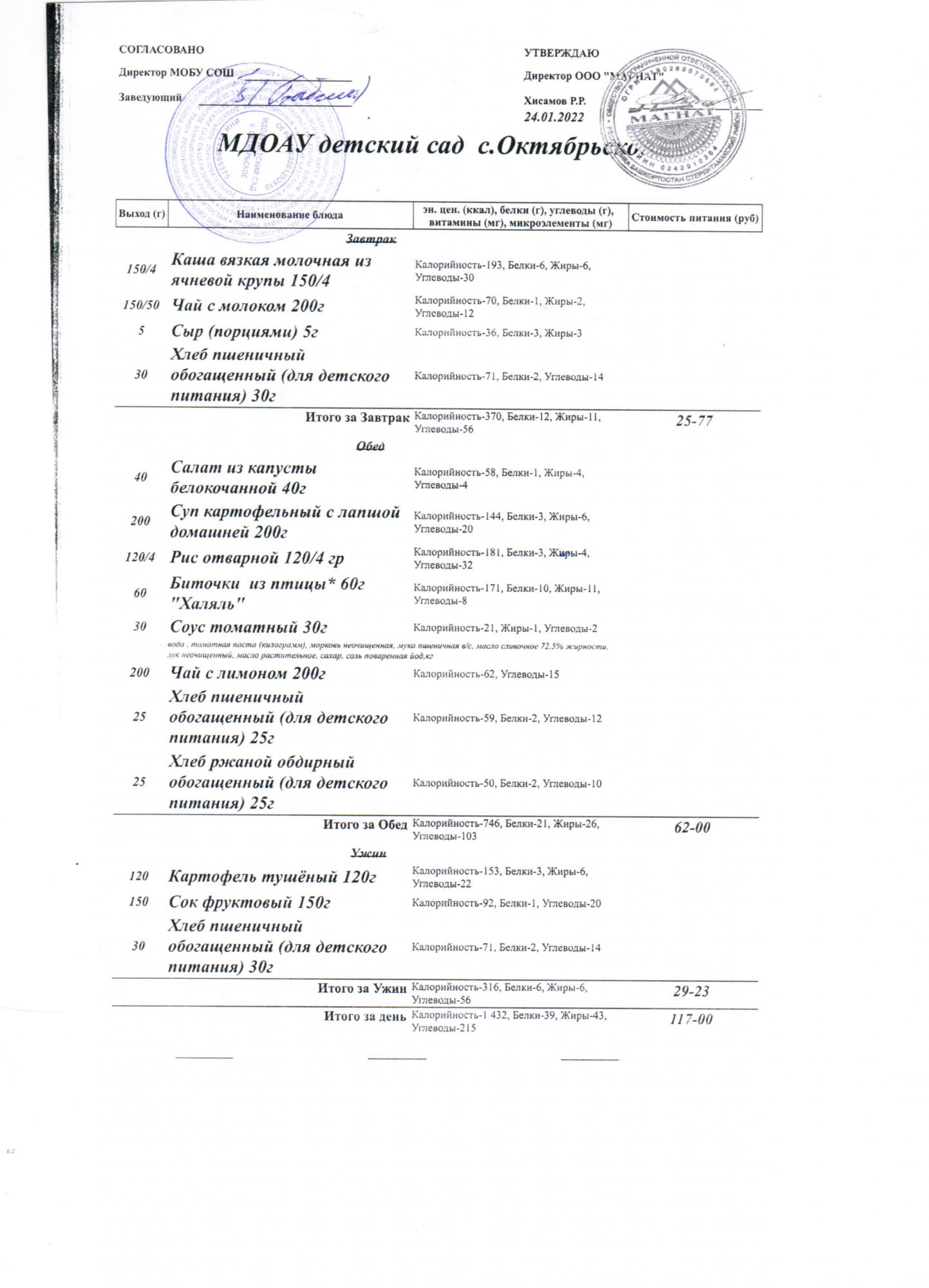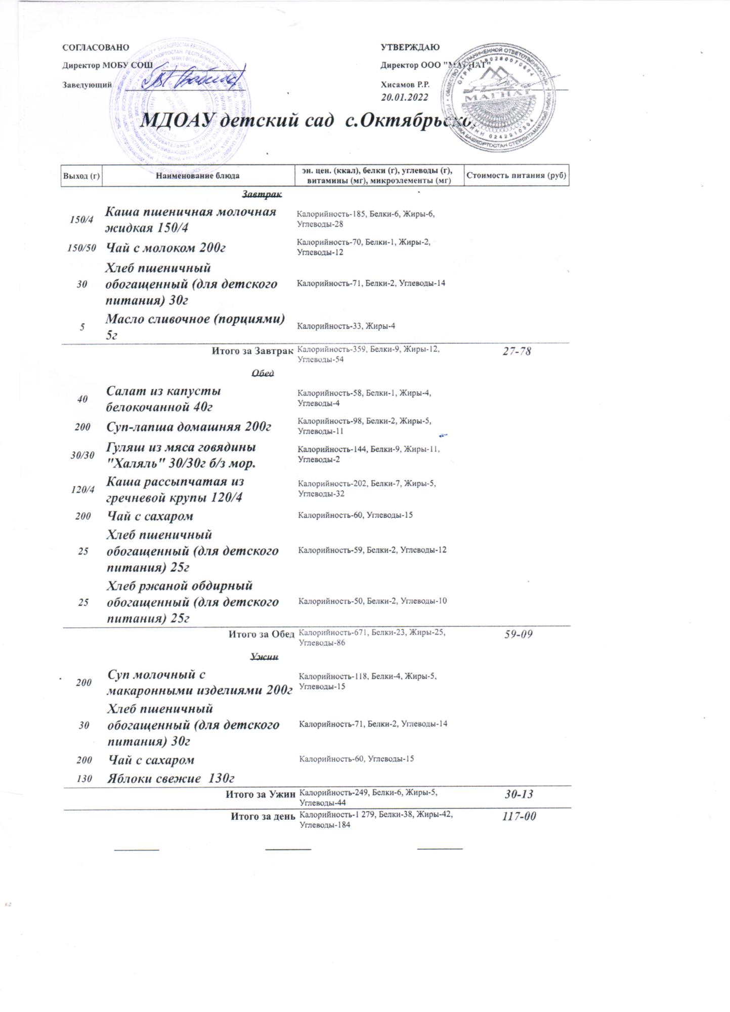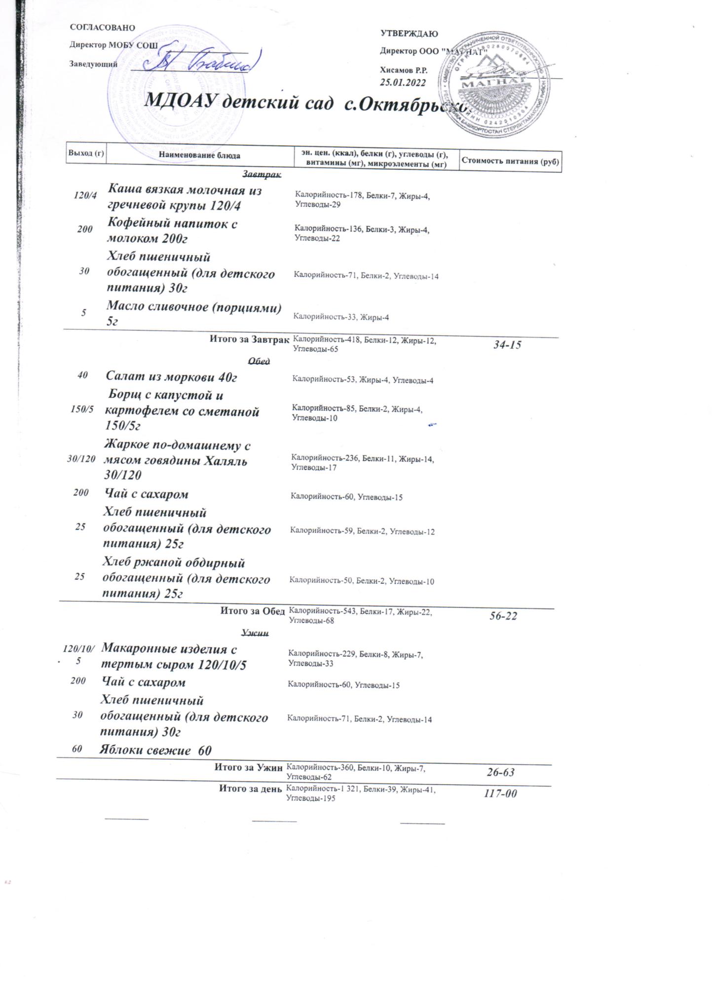 Стоимость питания