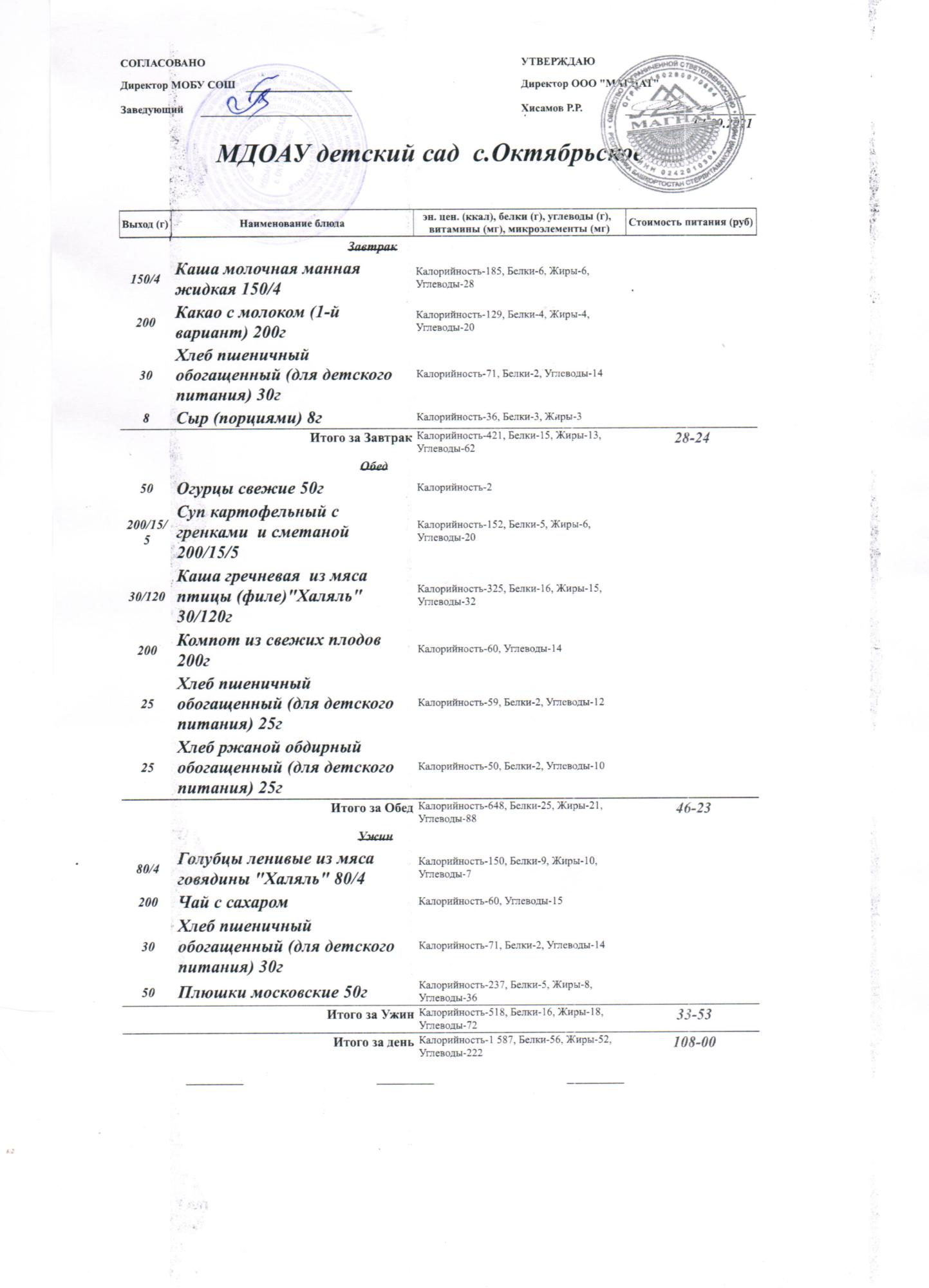 Стоимость питания